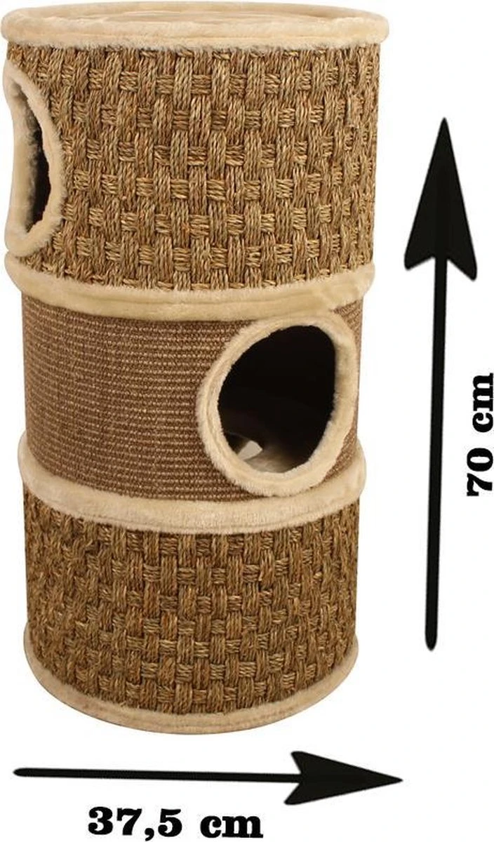 De Krabton Zeegras Kyra van Adori heeft een afmeting van 45 x 100 cm en is een mooie toevoeging aan je interieur. Deze krabton bevat drie openingen waar je kat in kan kruipen. Binnenin vindt je kat twee heerlijke slaapplekken en een gat om door de krabton te navigeren. De bovenkant bevat een zacht pluche oppervlak waar je kat op kan slapen of rusten. De buitenkant van de krabton is bekleed met gewogen matten om aan te krabben. Zo biedt de Zeegras Kyra oneindig veel krabplezier voor je kat! Deze krabton is bruin met beige van kleur.