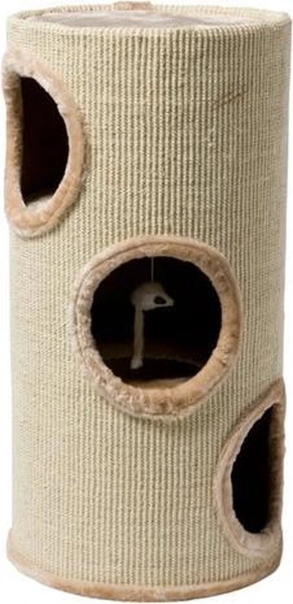 De Krabton Pascal Beige van Adori heeft een afmeting van 35 x 70 cm en is een mooie toevoeging aan je interieur. Deze krabton bevat drie openingen waar je kat in kan kruipen. Binnenin vindt je kat twee heerlijke slaapplekken en een gat om door de krabton te navigeren, plus een hangend muisje om mee te spelen. De bovenkant bevat een zacht pluche oppervlak waar je kat op kan slapen of rusten. De buitenkant van de krabton is bekleed met sisaltouw om aan te krabben. Zo biedt de Pascal Beige oneindig veel krabplezier voor je kat! Deze krabton is beige van kleur.