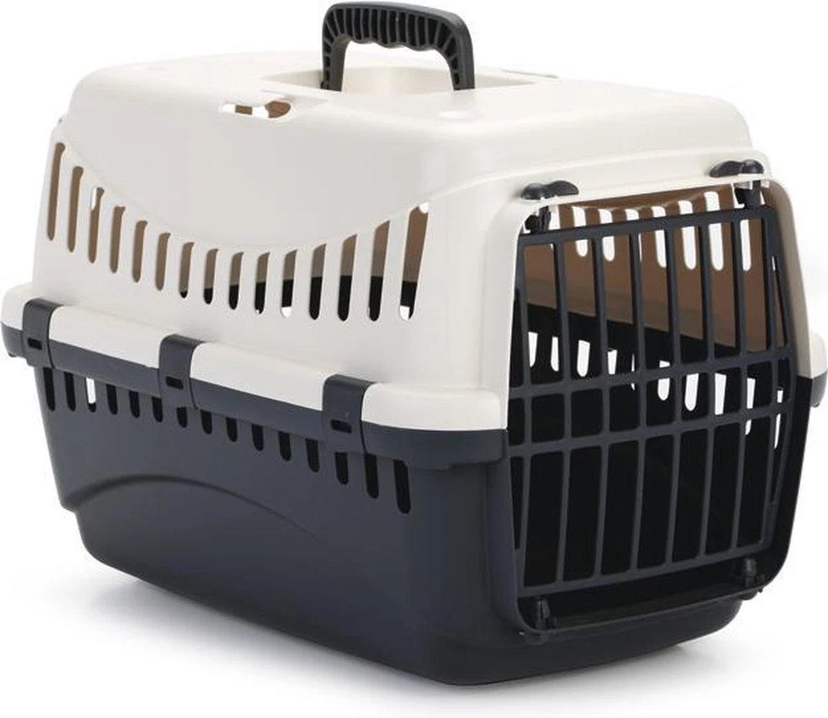 De Beeztees Gypsy reismand is een reismand speciaal bedoeld voor het vervoeren van jouw kleine huisdier, zoals een kitten, kat, konijn etc. De bovenkant is eenvoudig los te maken door middel van de klemmen aan de zijkant. Je kunt jouw huisdier zowel door deze bovenkant of via de deur aan de voorkant, in de mand plaatsen. Aan de bovenkant van de reismand is een handvat bevestigd, waardoor je de reismand eenvoudig op kunt tillen en kan verplaatsen. – Verkrijgbaar in 2 kleuren en 2 maten Afmetingen: – 46x31x32 cm – 58x58x38 cm