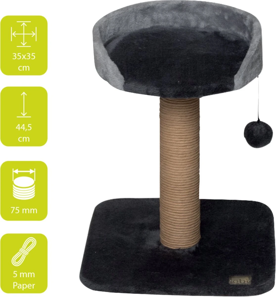 De ‘Trend Grove’ krabpaalbevat alle aspecten die voor jouw kat belangrijk zijn in zijn leventje. Er kan gekrabd worden aan de paal met zeer sterke sisal, maar er kan ook heerlijk in geslapen worden op de zachte pluche ligplaats. De krabpaal is ook voorzien van een speelballetje met elastiek.