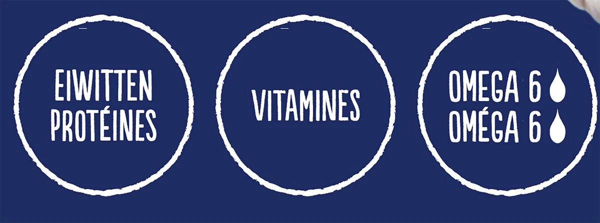 (* gelijk aan 45% gerehydrateerd vlees en dierlijke bijproducten, met min 1% rund en min. 1% kip).