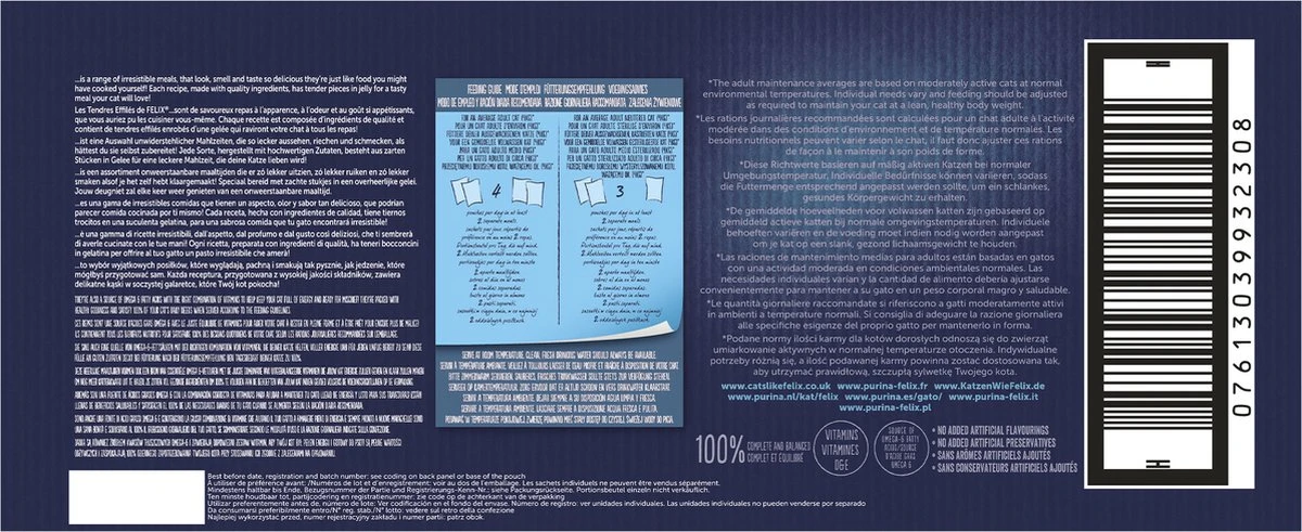 Felix Elke Dag Feest is een assortiment van heelijke maaltijden die er zó lekker uitzien en zó lekker ruiken alsof je ze zelf hebt klaargemaakt. Speciaal bereid met malse stukjes in een sappige gelei, jouw kat zal elke keer weer genieten van een onweerstaanbaar lekkere maaltijd.