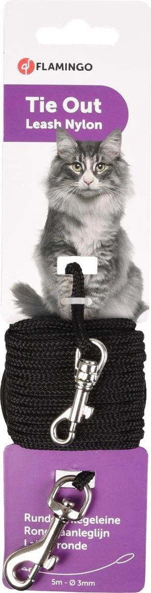Flamingo – Katten Aanleglijn – Zwart – 500 x 0.3 x 0.3 cm