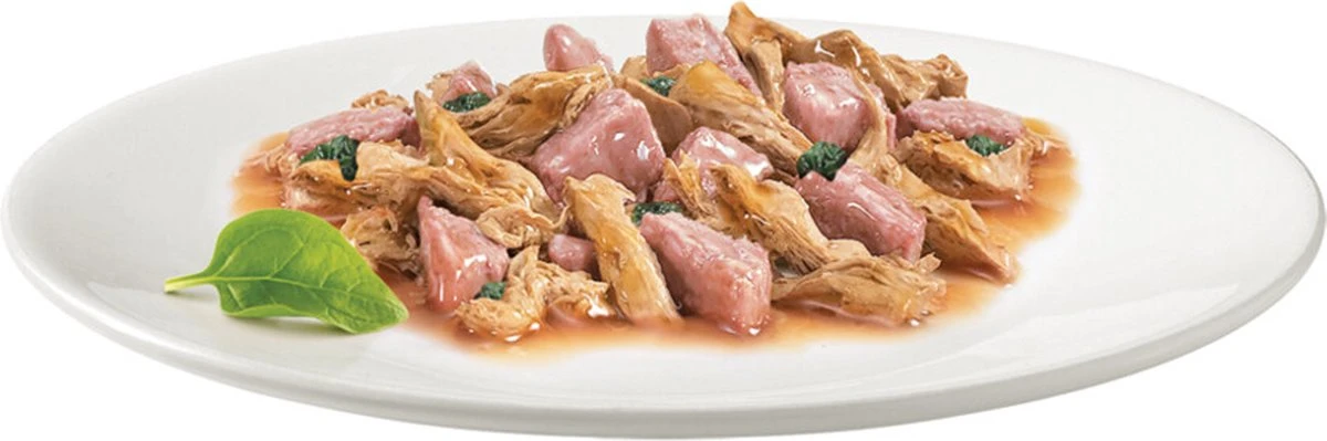 U wilt niet dat uw kat verveeld raakt met haar maaltijden en daarom zoekt u altijd naar verschillende voedingsopties waarvan ze zal genieten. Daarom heeft GOURMET™ Gold Luxe Mix ontwikkeld, heerlijke recepten om haar verfijnde smaak dagelijks te verwennen met een andere smaakbeleving. Zachte stukjes gecombineerd met zorgvuldig bereide fijne vlokken: de ideale combinatie van twee verschillende texturen in dezelfde maaltijd om uw kat het genot van een subtiele mix van smaken en texturen te bieden. Alle GOURMET™ Gold recepten bevatten geen toegevoegde kunstmatige kleurstoffen, conserveermiddelen en smaakstoffen.Luxe Mix van GOURMET™ Gold, dubbel genot voor uw kat!
