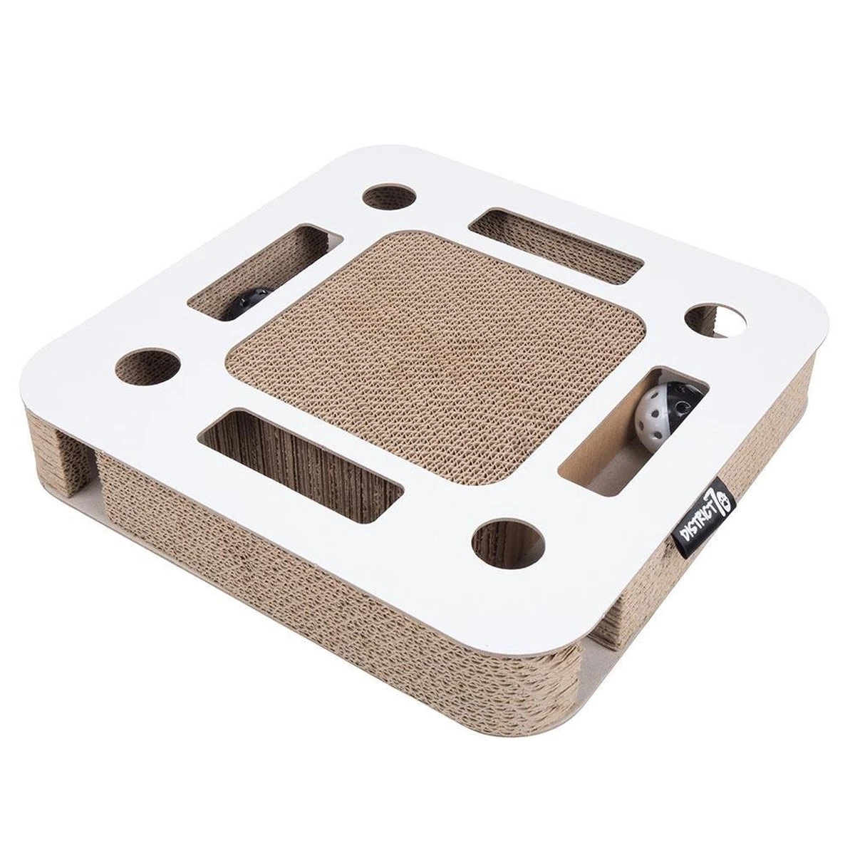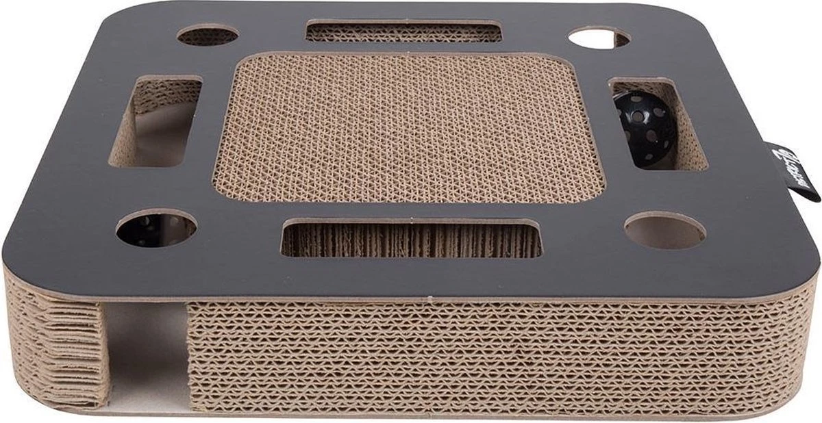 Het draait rond, maakt geluid en het is gemaakt van karton, kortom de SPY heeft alle ingrediënten voor jouw kat om de hele dag vermaakt te worden. Katten zijn gek op balletjes om mee te spelen, vooral als deze ook nog rinkelen! Het balletje is gevuld met een rinkelend belletje waar jouw kat urenlang speelplezier aan zal beleven. Door jouw kat het balletje vooruit te laten duwen en er achteraan te laten gaan, stimuleer je bovendien ook zijn jachtinstinct. Als jouw kat even geen zin heeft om te spelen, dan kan hij altijd nog zijn nagels scherpen aan het golfkarton bovenop.
