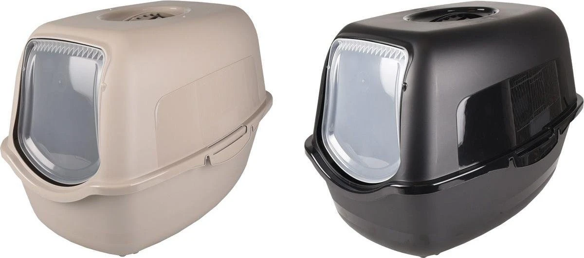 Kattenbak Lexie is een mooie zwarte kattenbak die aan de bovenzijde een handvat heeft zodat je deze makkelijk kunt verplaatsen. De kap is er eenvoudig af te halen door middel van een kliksysteem. Het deurtje houdt de nare geurtje zoveel mogelijk in de bak en kan er eenvoudig uitgehaald worden.
