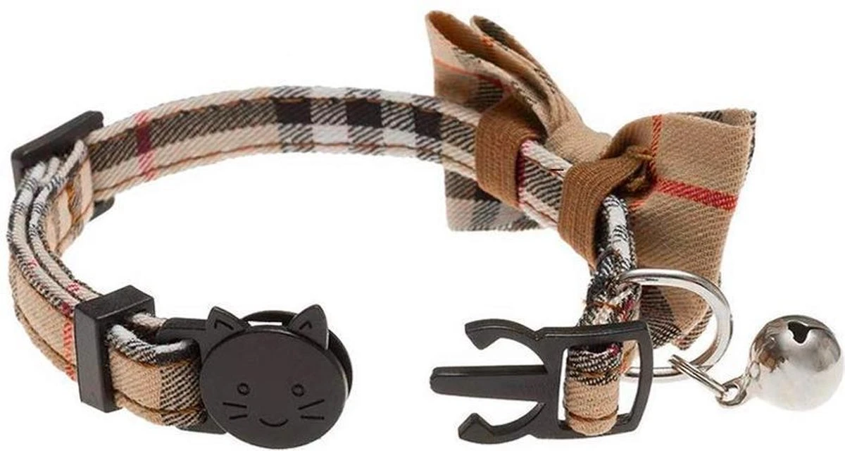 Stijlvolle klassieke halsband voor poes, kat of kitten met veiligheidssluiting, strik en belletje: