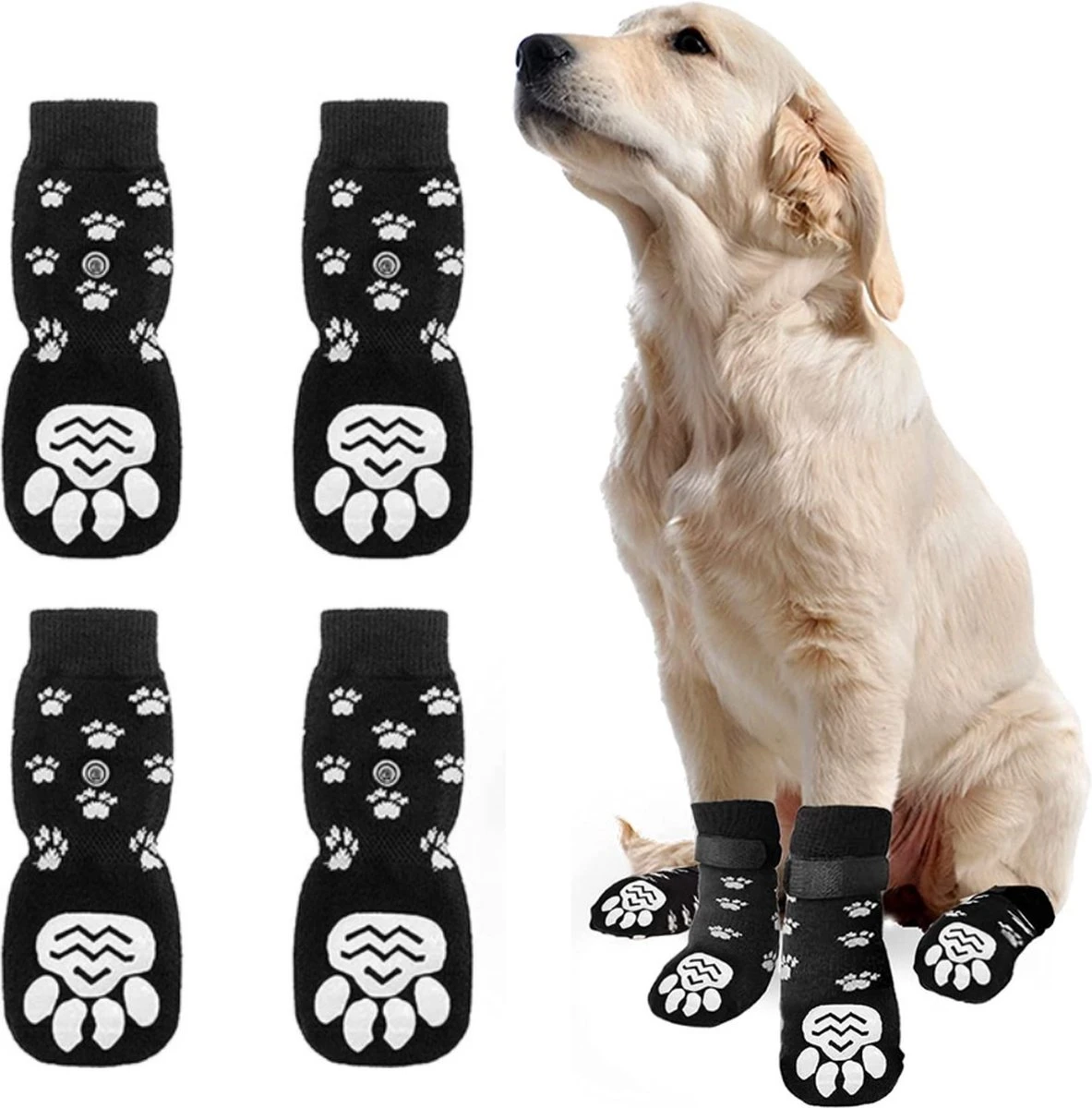 - 【Tips】: een set van 4 hondensokken, is praktisch voor dagelijkse vervanging en reiniging. Draag hondensokken antislip om je hond mooier te maken. De antislip hondensokken zijn geschikt voor verschillende gelegenheden binnenshuis en beïnvloeden de dagelijkse activiteiten van de hond na het dragen niet.