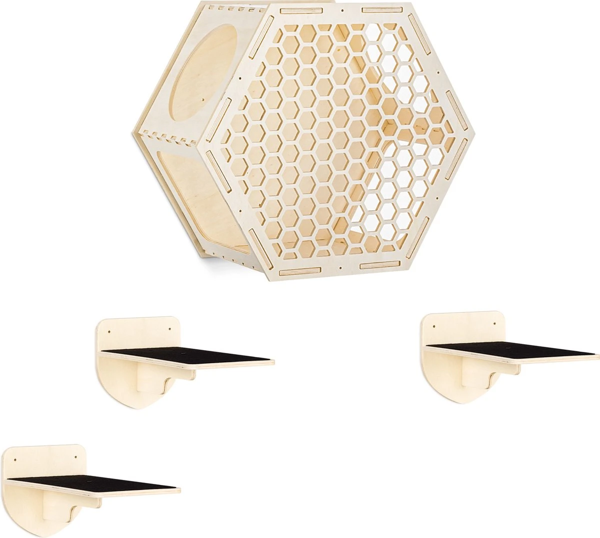 Navaris Katten Klimwand 4-delige Set – Katten Klimmuur Voor Binnenshuis – Kattenmeubel Met Wandmontage – Met Drie Plankjes Voor Meer Klimplezier