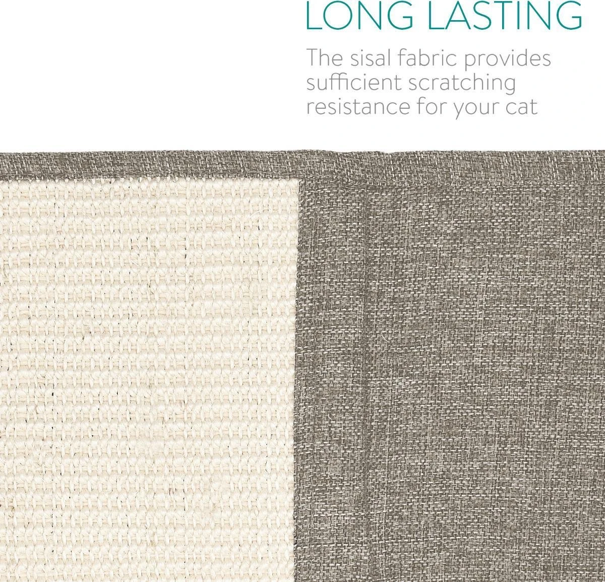 - KLAUWVERZORGING: De ene helft van de mat is bedekt met sisal en de andere helft is van stof. Je plaatst hem over de armleuning en stopt de stoffen kant onder het zitkussen. Nu kan je kat zijn klauwen scherpen, terwijl jouw bank of stoel beschermd is.