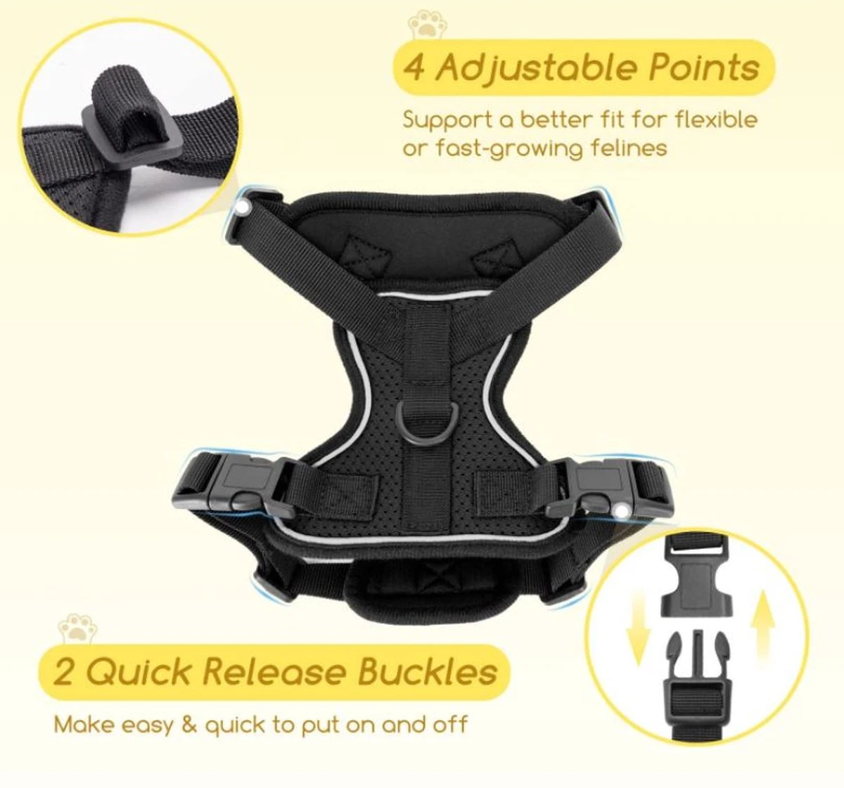 Harnasje met riem voor volwassen katten. Goede pasvorm die er voor zorgt dat jou kat niet kan ontsnappen. Voorzien van verstelbare bandjes en kliksluiting.
