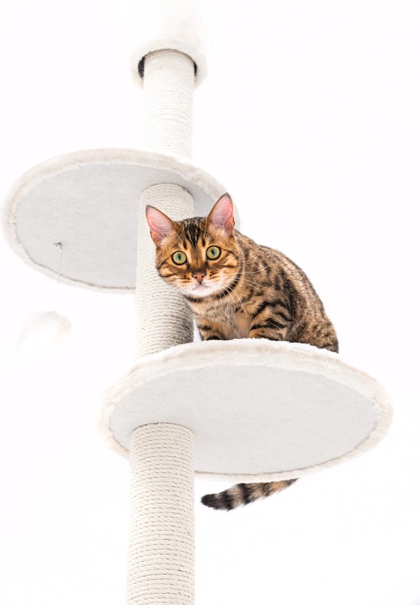 Ben je op zoek naar de alleskunner onder de krabpalen? Dan is krabpaal Anna 240 echt wat voor jou! Dit kattenmeubel is namelijk geschikt voor elk type en kattenras en er kunnen meerdere katten in spelen en slapen. Jouw Royal Rebels kunnen er ook heerlijk uitgebreid aan krabben of zich verstoppen in het slaaphuisje. Ook fijn: deze koninklijke krabpaal ziet er supermooi uit en neemt heel weinig ruimte in beslag. Kan gespannen worden tegen plafonds van 240 tot 265 centimeter.