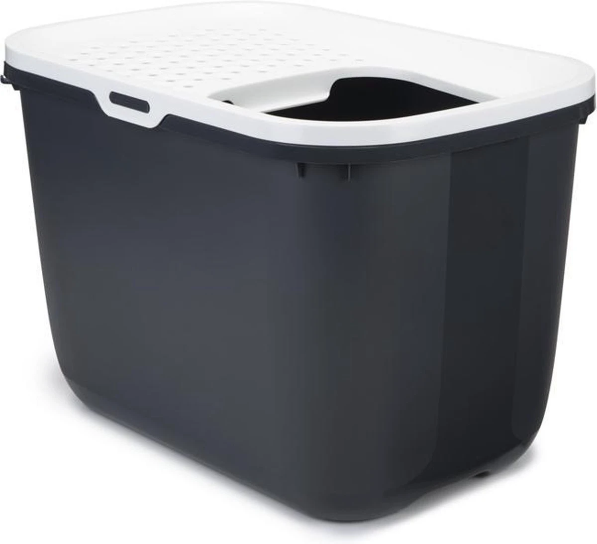 Zoals de naam ‘Hop In’ van Savic al doet vermoeden zal je kat op een andere manier in de kattenbak moeten komen. De opening bevind zich aan de bovenzijde van deze robuuste kattenbak. Door dit innovatieve design kan je kat naar hartenlust graven in de bak zonder dat jij last hebt van alle kattenkorrels in het huis. Wanneer je kat namelijk uit de kattenbak springt komt deze op een rooster met luchtgaten. De korreltjes vallen door de gaten terug de bak in!