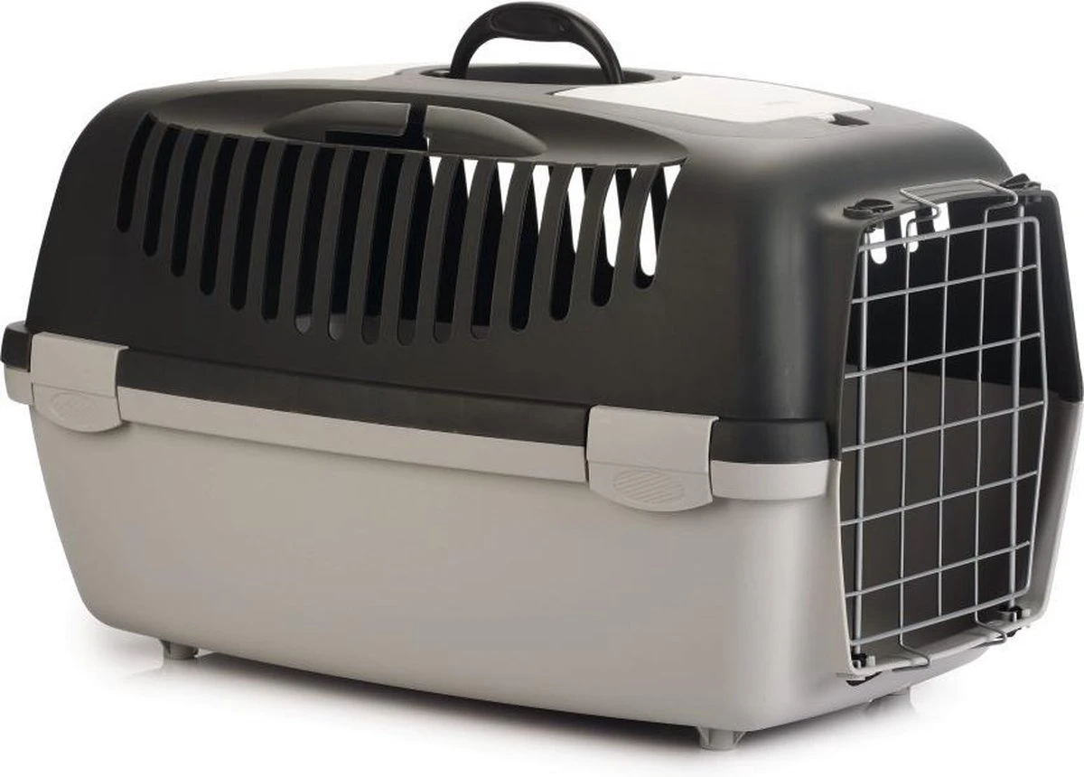 De Gulliver Reismand is speciaal gemaakt om jouw huisdier veilig te kunnen vervoeren. Deze reismand is voorzien van een metalen deurtje en heeft aan de zijkanten voldoende ventilatie. Met de klippen aan de zijkant kan de deksel verwijderd worden, dit is handig voor huisdieren welke erg bang zijn. Zo kan de dierenarts toch zijn onderzoek doen, terwijl jouw dier veilig in zijn mandje kan blijven. Met het handvat til je de reismand gemakkelijk op. – Inclusief deur – Bovenzijde geheel los te halen – Inclusief handvat – Verkrijgbaar in 3 afmetingen Afmeting: – Gulliver 1: 48x32x31 cm – 5 tot 6 kg – Gulliver 2: 55x36x35 cm – tot 8 kg – Gulliver 3: 61x40x36 cm – 10 tot 12 kg