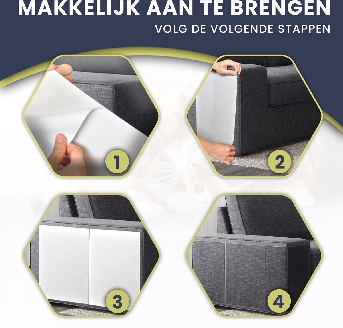 De anti krab vellen set van TibaGoods bestaat uit 6 XL-vellen, die gemakkelijk te knippen zijn! Je kunt dus met 1 set jouw hele huis beschermen. En dan moet het beste nog komen: de beschermlaag is zonder punaises aan te brengen!