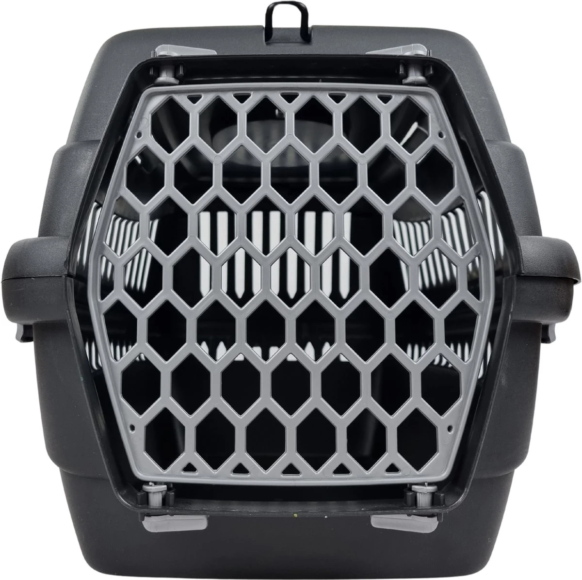 De Topmast reismand is de perfecte oplossing voor het vervoeren van katten en kleine honden. Het unieke deurontwerp is geïnspireerd op het patroon van een bijenkorf (hive) en zorgt voor een extra stijlvolle touch. Met zijn stevige deur, handvat en vele ventilatiegaten is deze reismand comfortabel en veilig voor je huisdier. De afmetingen zijn 46 x 32 x 33 cm en het maximum aanbevolen gewicht is 5 kilogram. Dankzij de gemakkelijke kliksluiting aan de zijkant is de reismand makkelijk te openen en schoon te maken, en zorgt het voor een eenvoudige manier om je huisdier in de reismand te plaatsen. Bovendien is deze reismand tegen een topprijs beschikbaar!