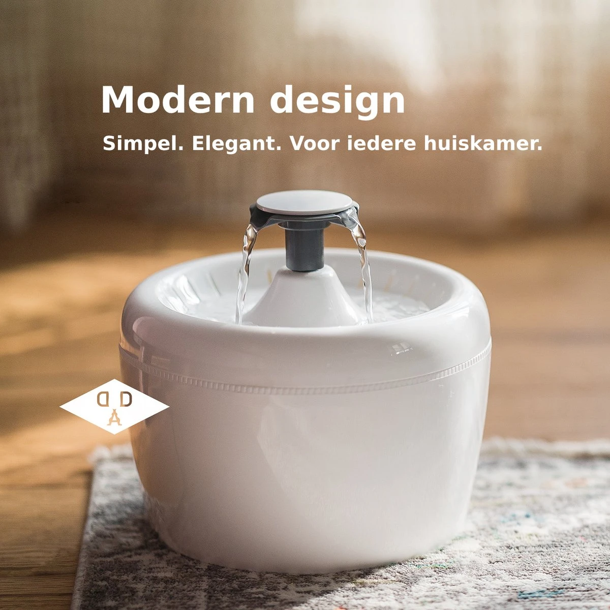 Het prachtige moderne design van de TrevoPet® waterfontein is in 2020 genomineerd voor de Dutch Design Awards. Doordat er goed is nagedacht over het design en er geen gebruik is gemaakt van felle kleuren, zal de kat sneller geneigd zijn om uit de waterfontein te drinken. Daarnaast is het materiaal BPA-vrij en 100% veilig voor je geliefde huisdier. Ook is er een transparant voorvenster ontwikkeld die het waterniveau duidelijk aangeeft.